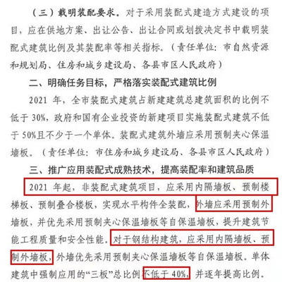 .2021年,全市裝配式比例占新建建筑總面積不低于30%。
